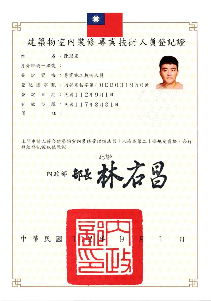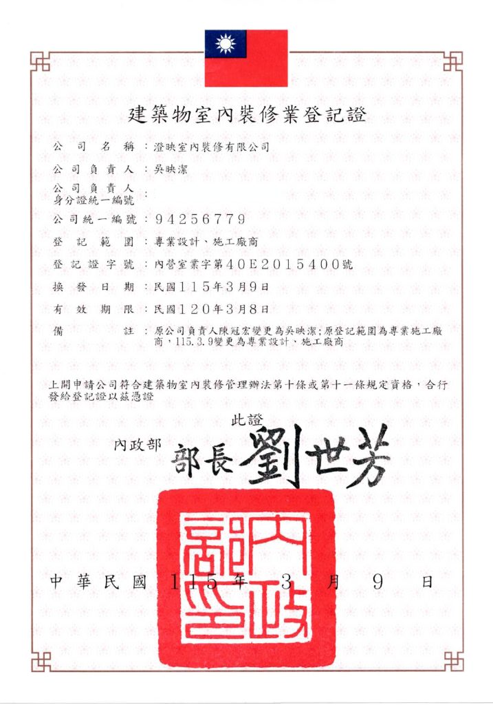 憑藉對專業的追求,她同時考取**「建築物室內設計」與「建築物室內裝修工程管理」國家級雙乙級技術士**,具備合法簽證與審查資格。她擅長以經營者視角切入,在法規安全、預算精算與空間坪效間取得最大公約數。