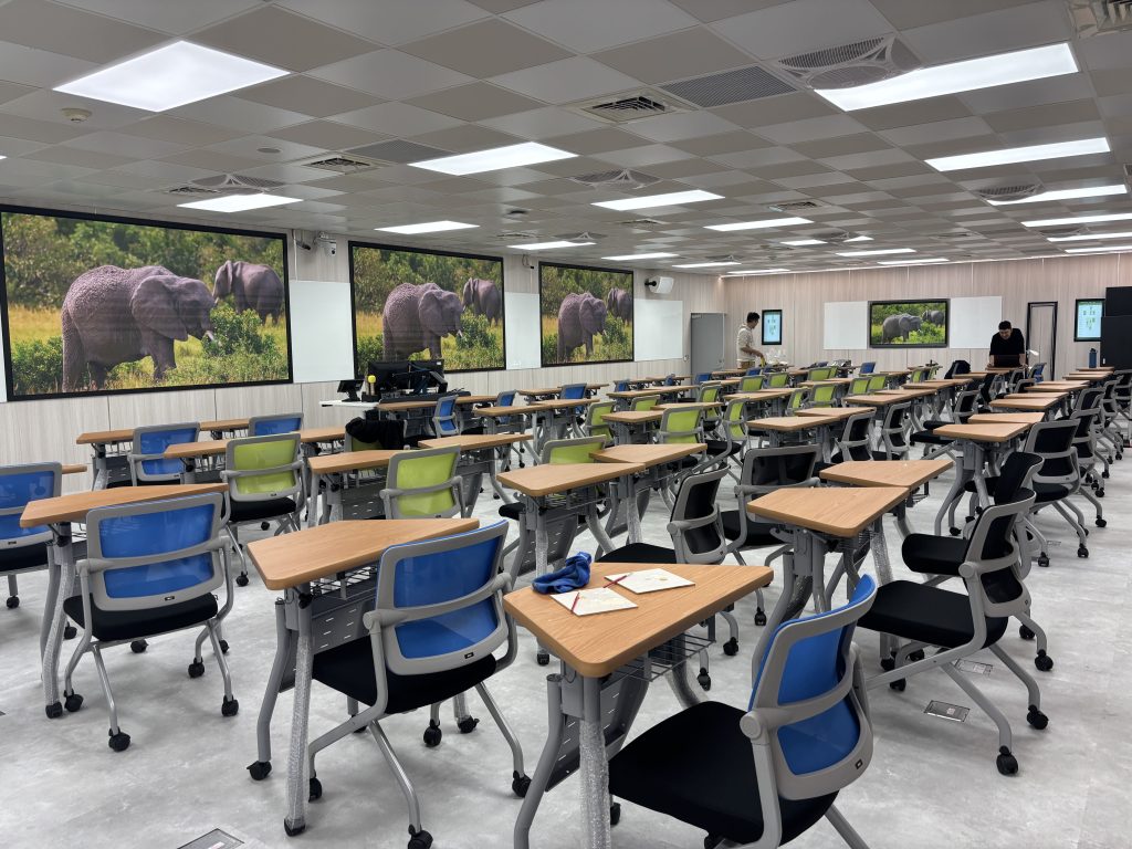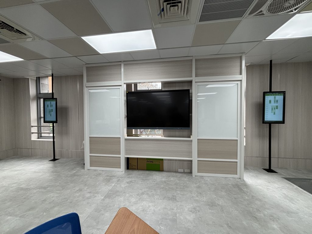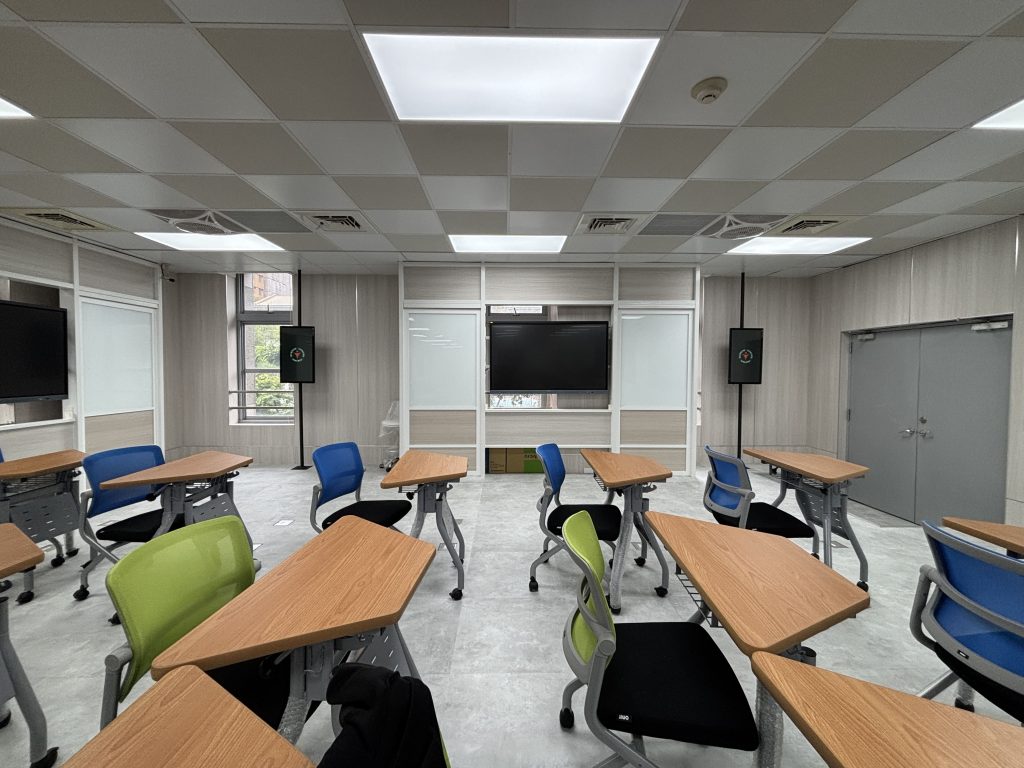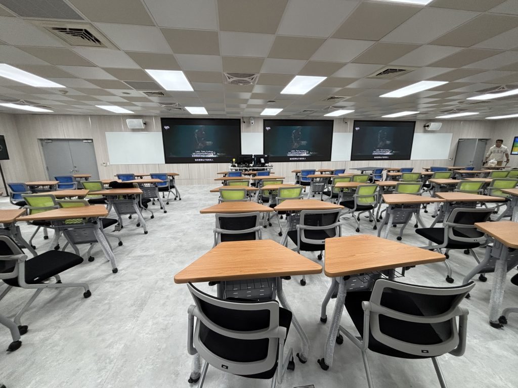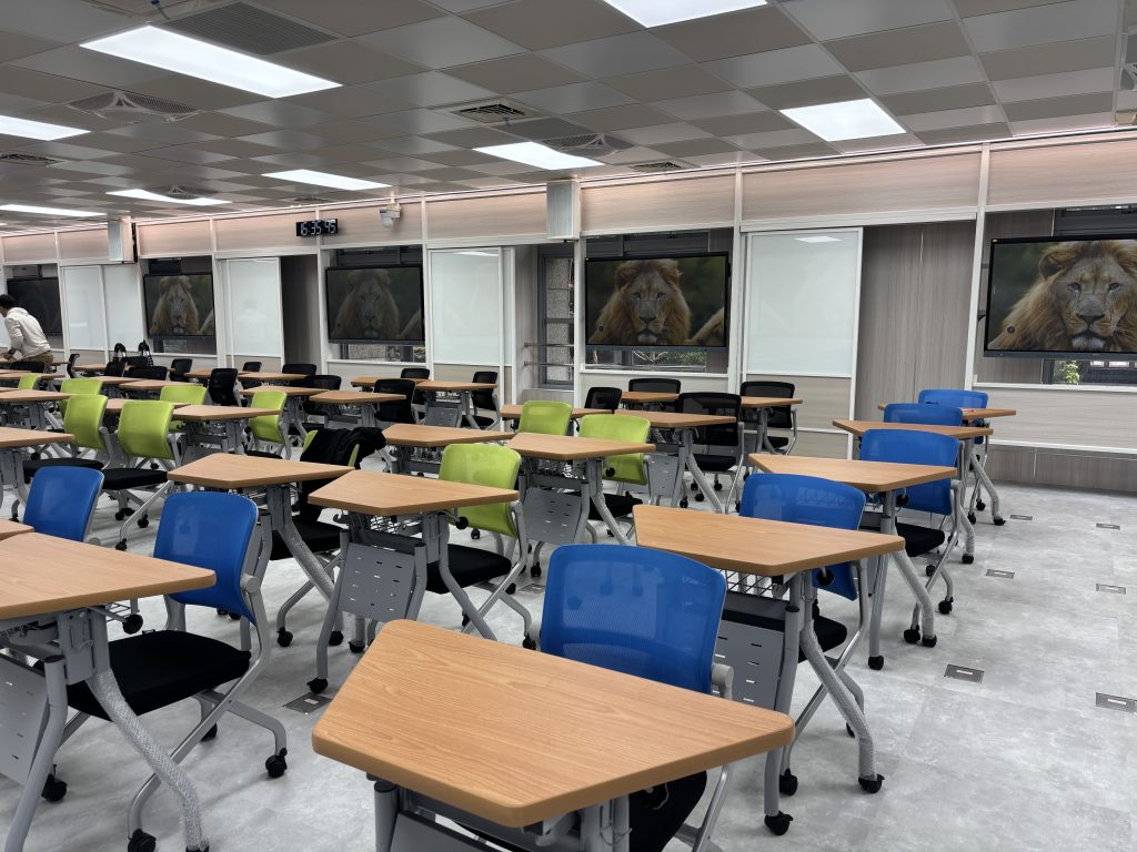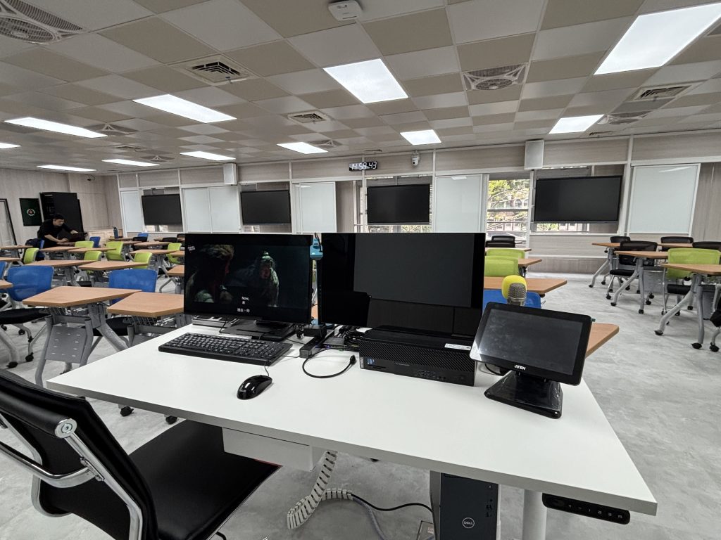 原有電腦教室改造-大教室前後大螢幕以及互動式小組討論
